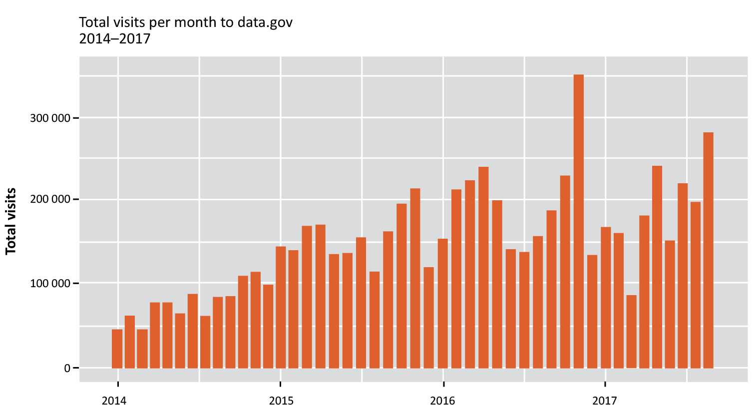 Figure 2: Monthly visits to data.gov (2014–2017)