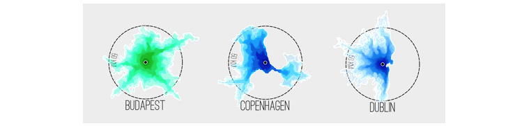 Figure 1: The shape of capitals of Europe – How far can you travel in 1 hour by car?. Source: Created by Topi Tjukanov (used with permission)
